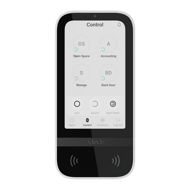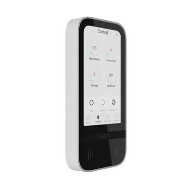 Technical Data Sheet Part number AJAX#58469 White wireless keypad with touch screen to control an Ajax system ...